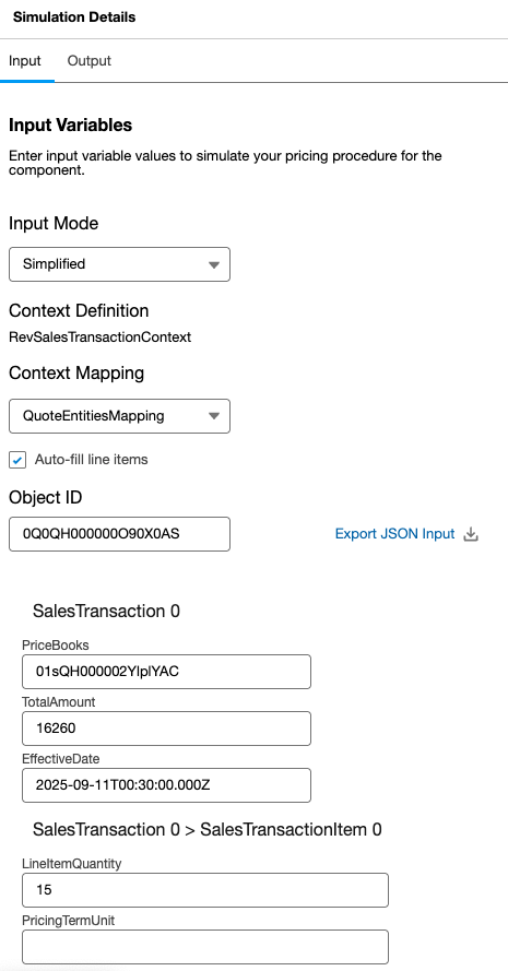 We can then either manually enter our JSON input values or we can pre-load the input based on a specific quote Id. There are a couple of input values which we still need to populate manually such as the effective date in the appropriate format.