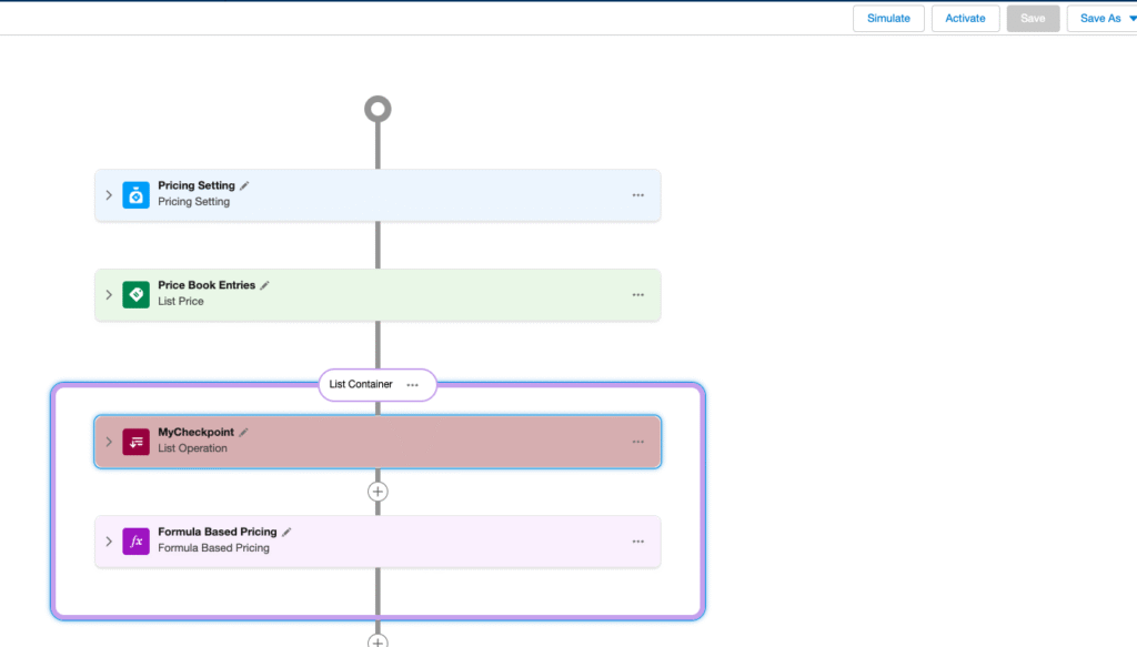 Using the Simulator we can then debug our Pricing Procedure as we develop and customise it or troubleshoot any pricing issues we find while using it. This is a good example of the enterprise architecture within Revenue Cloud – transparency of the solution and support for industry development standards and techniques.
