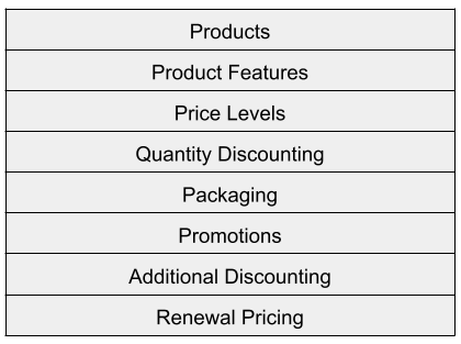 How customers perceive the benefits of your products forms the staple core of your pricing strategy. Having the correct products with simple to understand benefit statements is key to reducing sales friction and simplifying the sale process. Products are typically explained using product features and these features are often relied on to explain the value to the customer and sell the products. Having products and features which are packaged together for specific customer requirements makes it simpler for customers to understand the benefits. Developing this theme further a standard pricing tactic is to create Products which segment the market and are positioned in terms of the levels: